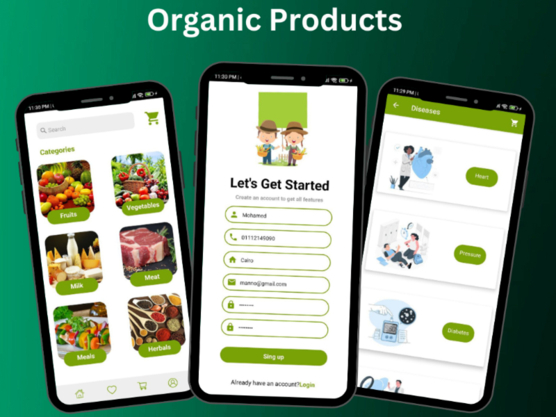 A store selling organic products and healthy foods. The store includes many features, which is that the store sells products that are free of chemicals and carcinogens, which are not available in most places, in addition to healthy meals and a nutritionist to follow the diet and some advice for diseases and information about products