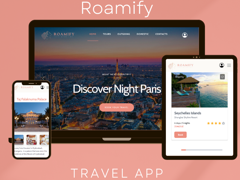 Discover the world's wonders with Roamify, a stunning Angular application developed by our dedicated team. With a focus on user experience and functionality, we've utilized cutting-edge technologies to create a seamless travel booking platform.